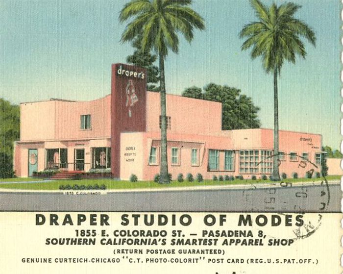 In 1948, the building was enlarged and remodeled to fit the "modern" brand Virginia had built. Although the company left this Colorado Boulevard location many years ago, the company was still around until 2017, when the company who acquired them decided to close all their retail locations. Ninety years is not a bad run and Draper's still does have an online presence. More about Virgina can be found here.